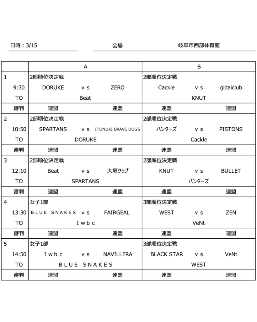 2025年度GSBリーグ戦3月15日の組合せについて