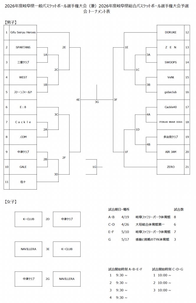 2026年度岐阜県一般バスケットボール選手権大会 組合決定のお知らせ